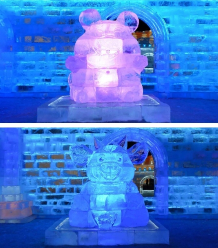 쥐는 령동하고 귀여웠고 소는 침착하고 듬직하며 호랑이는 위엄이 넘쳤고 토끼는 온화하고 사랑스러워 보였다. 룡은 비늘이 선명했고 양은 온순했으며 원숭이는 활발하고 령리한 이미지를 잘 구현했다. 고개를 들고 꼿꼿이 선 닭, 성실하고 순박해 보이는 개, 무던해 보이는 둥근 돼지를 포함한 십이지신 얼음조각상들은 모두 각자의 특성을 잘 살려 냈는데 여기서는 아무렇게나 찍어도 국풍의 분위기가 물씬 풍기는 인증샷이 나온다.