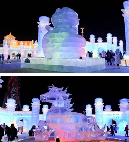 올해 겨울, 제27회 할빈 빙설대세계는 십이지신 얼음조각상 군락을 선보였다. 귀여운 십이지신 얼음조각상은 활발하고 장난기 넘쳐 많은 관광객들의 발길을 끌고 있다.
