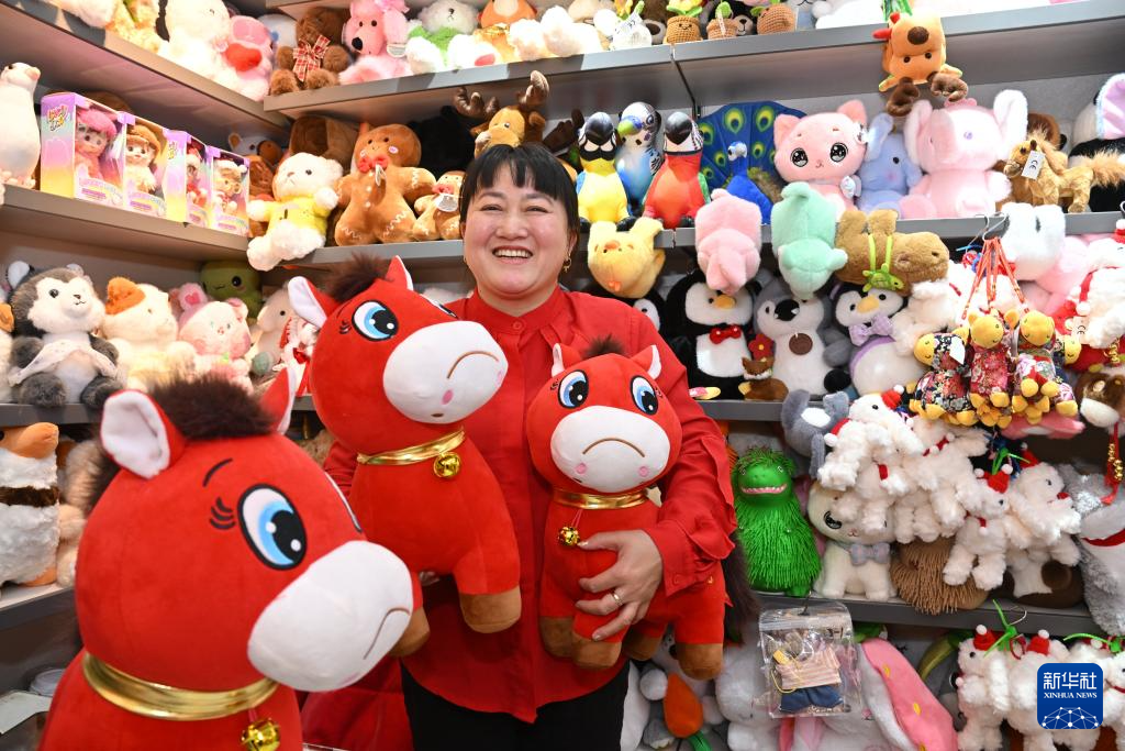 12일 절강(浙江)성 의오(義烏)시 국제비즈니스성 1구역의 완구 판매 구역에 전시된 작은 말 인형 '쿠쿠마(哭哭馬)'. 의오시에서 '쿠쿠마'가 예상 밖의 큰 인기를 끌며 새해 히트 상품으로 떠올랐다. 원래 불량품이였던 '쿠쿠마'는 특유의 억울한 표정 때문에 네티즌 사이에서 스트레스를 해소하는 힐링 인형으로 인기를 얻기 시작했다. 현재 '쿠쿠마'의 일일 주문량은 약 2만 개에 달한다.