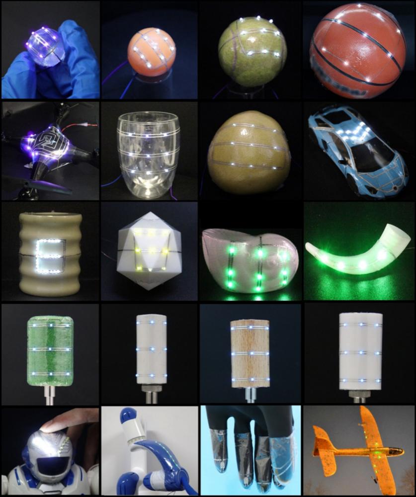 다양한 재질∙형태 표면에 적용된 플렉시블 전자회로. /취재원 제공
