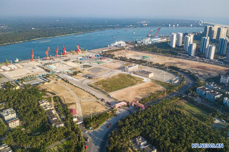 해남(海南) 문창(文昌) 청란(清澜)항 통상구를 2025년 12월 17일 드론에 담았다. /신화통신