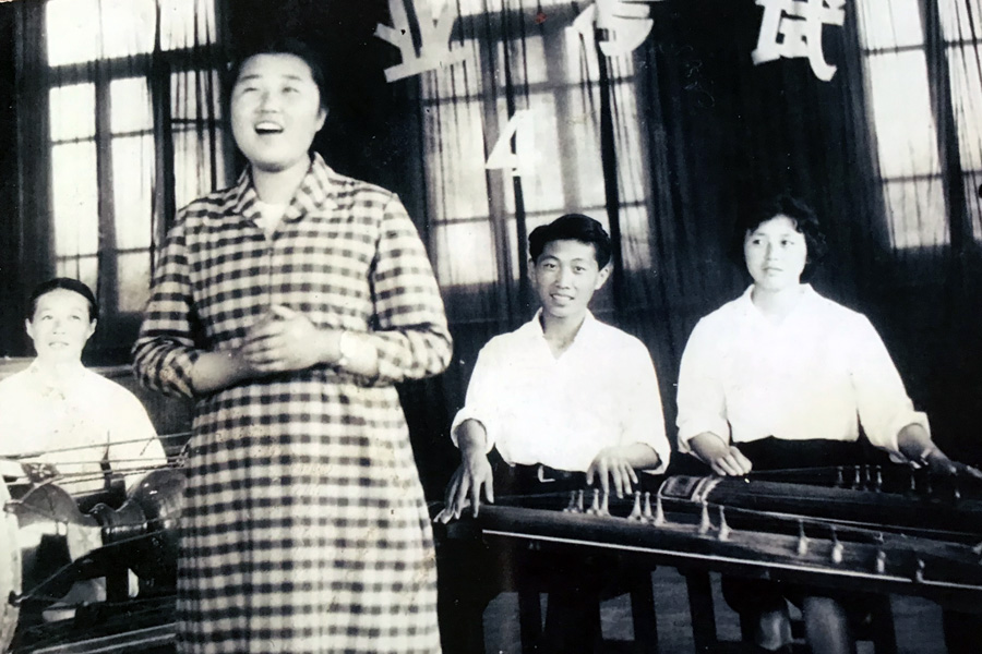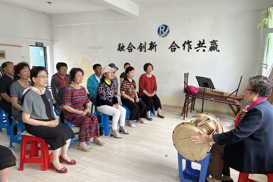 2016년 7월 전화자가 연길시북산가두 단홍사회구역 음악교실에서 <아리랑> 등 민요들을 전수하고 있는 장면.