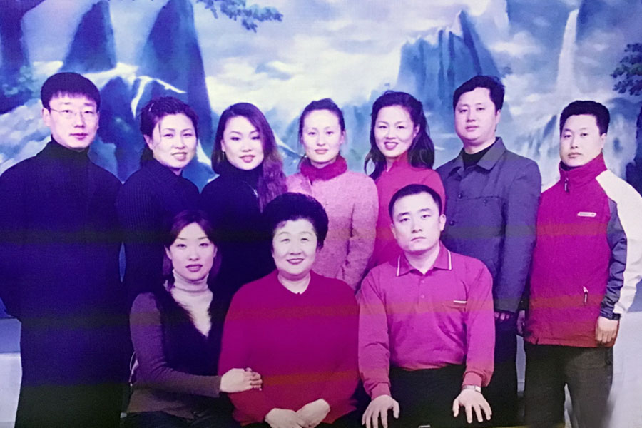 2020년 '문화와 자연유산일'기간에 연변무형문화유산보호중심과 연변텔레비죤방송국에서 렵합으로 조직한 <아리랑> 전승인 온라인 방문취재활동에서 전화자가 <아리랑> 주급 전승인 및 연변대학 예술학원 학생들과 함께 있는 장면.