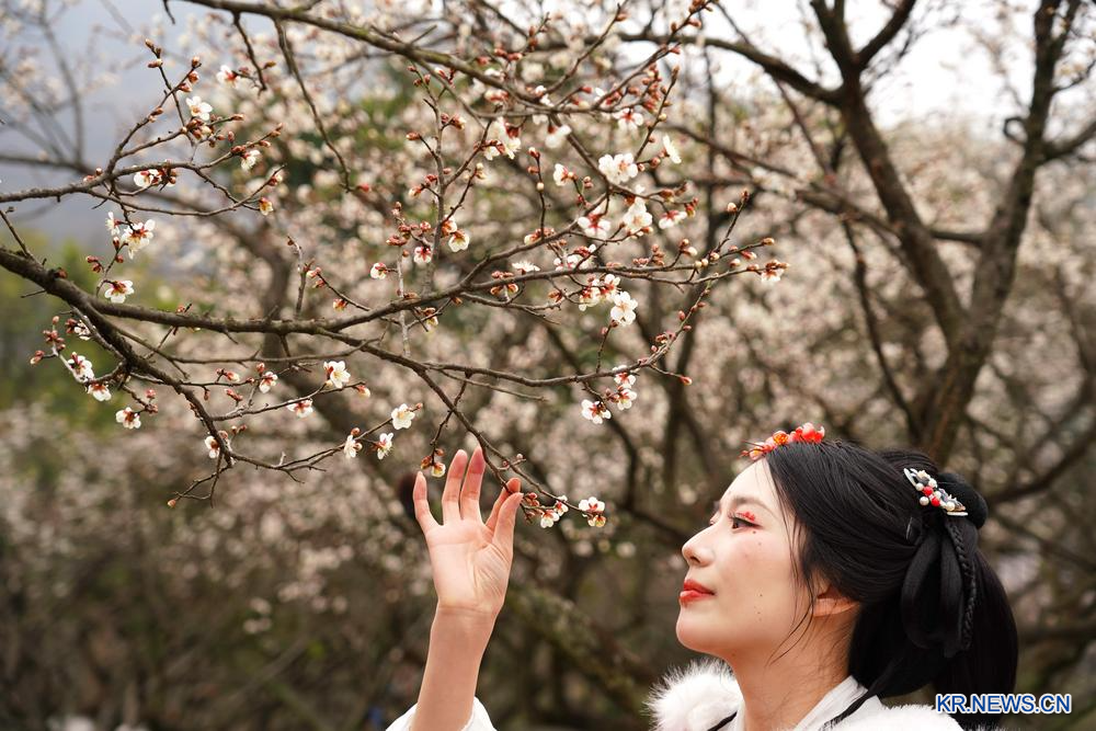 중국 각지에서 매화가 만개해 겨울 풍경을 화사하게 물들이고 있다.