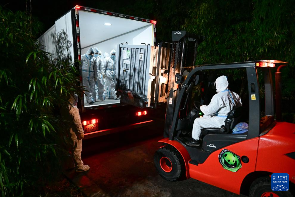 28일 새벽 1시(북경 시간, 이하 동일), 일본 도쿄 우에노동물원에서 지내던 자이언트판다 "효효(晓晓)"와“뢰뢰(蕾蕾)"가 항공편을 통해 성도 천부 국제공항에 무사히 도착했다. 이후 오전 6시에는 두 마리 모두 중국 자이언트판다 보호연구센터 아안기지에 순조롭게 입주해 격리 검역 절차를 받기 시작했다.