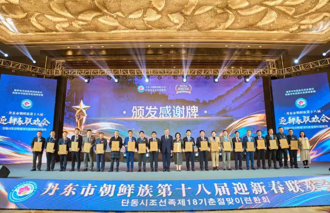 오후, 단동시조선족련의회 회장 리취임식 및 신년회가 열린 홀은 장엄하면서도 뜨거운 기운으로 가득했다.