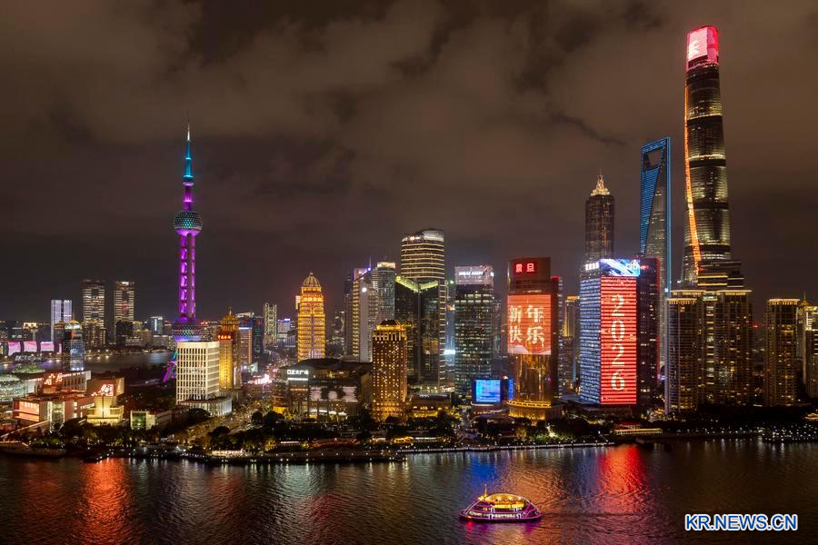 지난해 12월 31일 새해를 앞두고 조명을 밝힌 상해 륙가취(陆家嘴)의 야경. (사진/신화통신)
