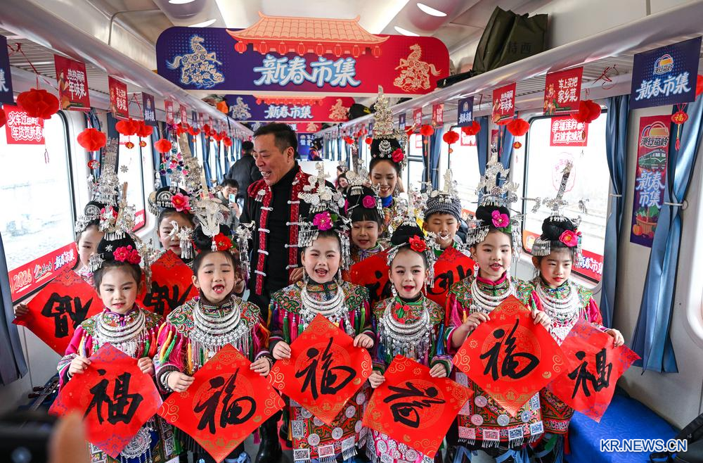 음력설(新春)이 다가오자 귀주(貴州)성 귀양(貴陽)시에서 옥병(玉屏)동(侗)족자치현으로 향하는 5640편 완행렬차가 새롭게 단장됐다. 축제 분위기의 객실, 신선한 농산물, 특색 민족 가무, 무형문화유산 전시 등이 신춘 분위기를 한껏 고조시켰다.