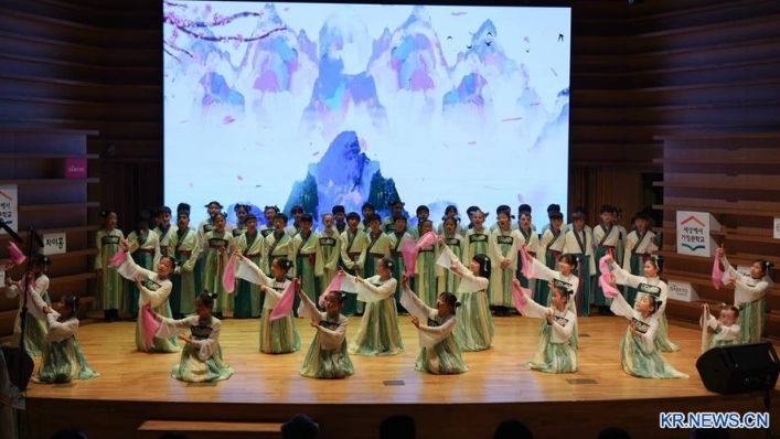 중·한 청소년 문화친선교류 공연이 4일 한국 차이홍공자아카데미에서 열렸다. 중국·한국을 비롯한 여러 국가의 청소년이 한자리에 모여 음악, 춤 등을 통해 소통하며 우정을 다졌다.