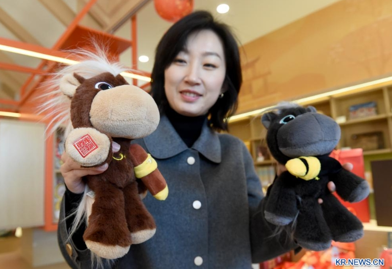 7일 직원이 원명원 문화창의 전시관에서 말 모양의 상품을 소개하고 있다.