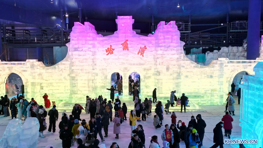지난 21일 "제27회 할빈 빙설대세계"가 페장한 뒤 단지 내 몽환빙설관이 이날 정식 개관해 몽환적인 빙설 이야기를 이어가고 있다.