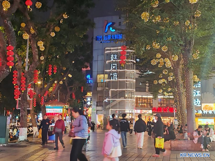 이번 춘절(春節·음력설) 련휴 기간 광동성 광주시 백운(白雲)구 원경로(遠景路)의 '한국 거리'에선 광동 전통 꽃등이 높이 걸리고 한식 고깃집에서 흘러나오는 고소한 냄새가 거리를 가득 채우며 중한 양국의 문화가 한데 녹아든 풍경을 자아냈다.