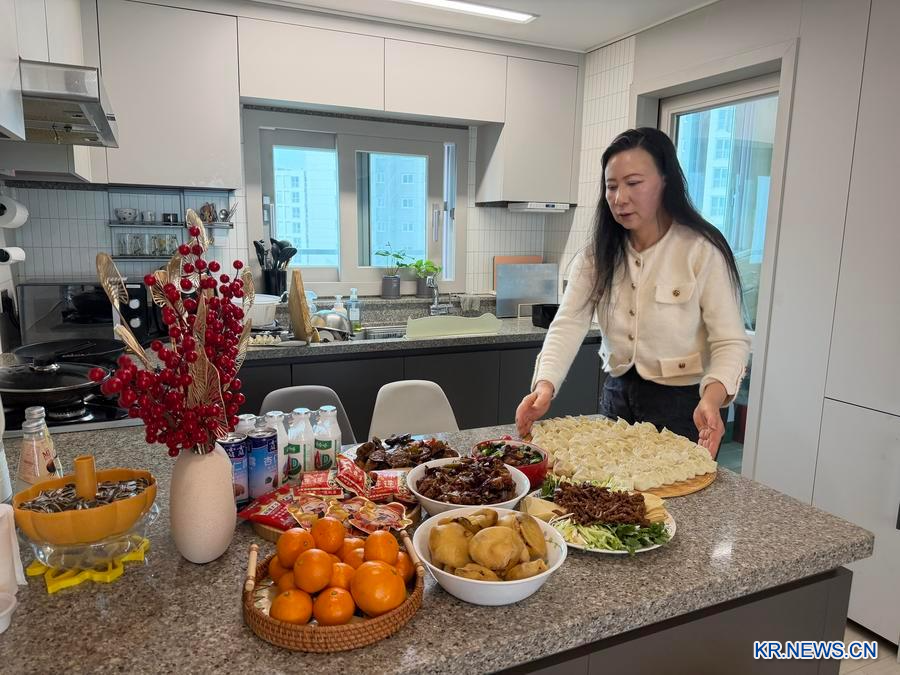 장광비의 어머니가 한국에서 녠예판(年夜飯·섣달 그믐날 함께 모여 먹는 가족 식사)을 준비하고 있다.