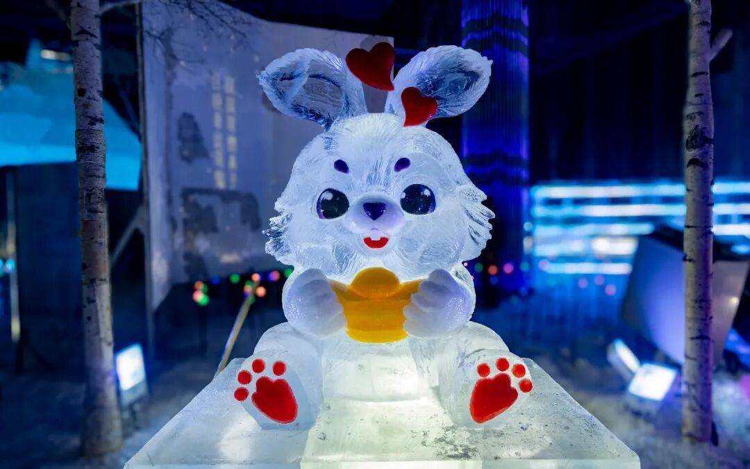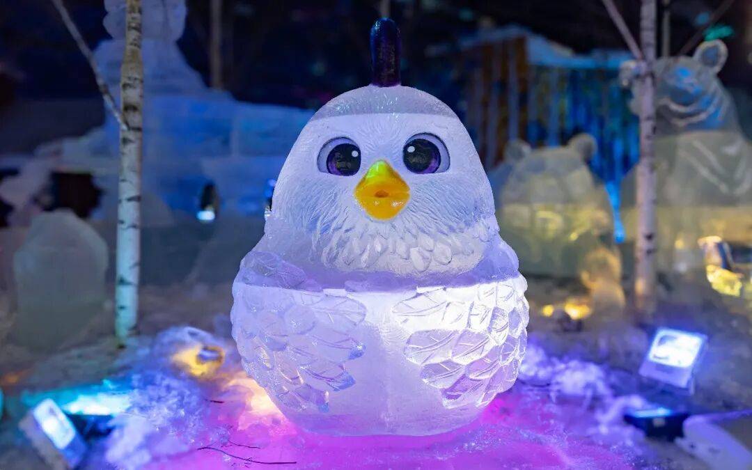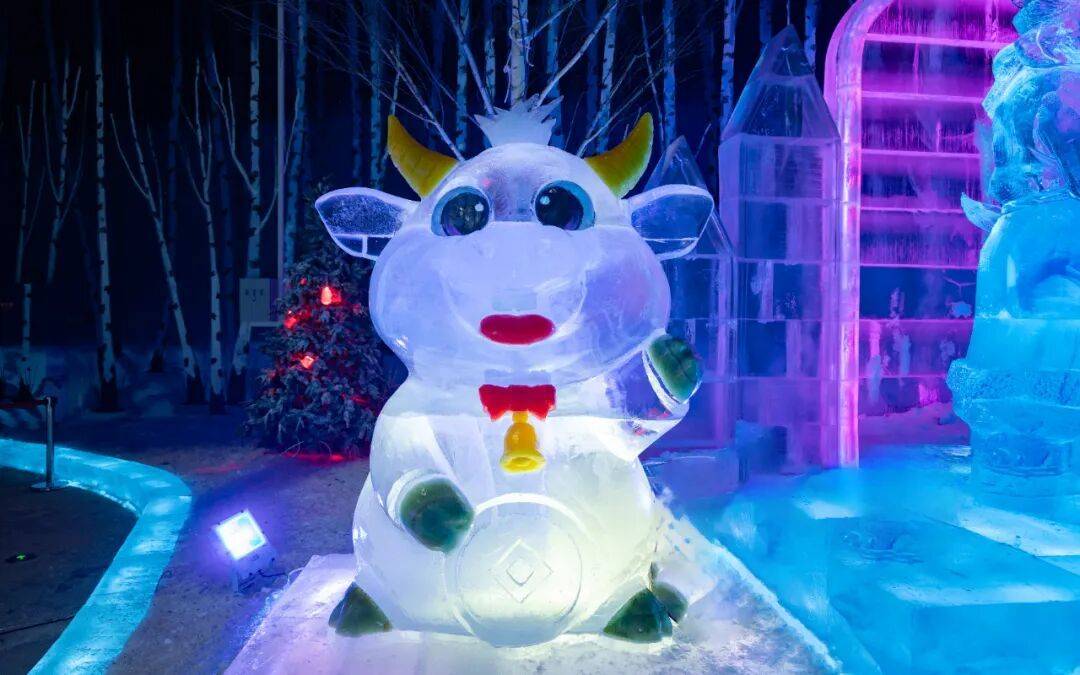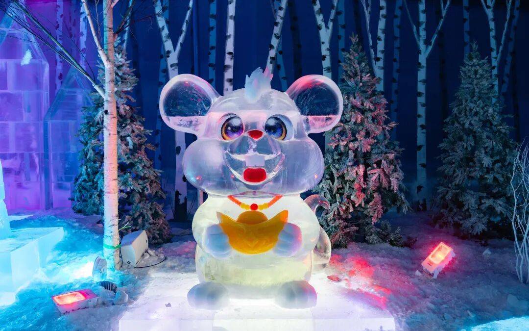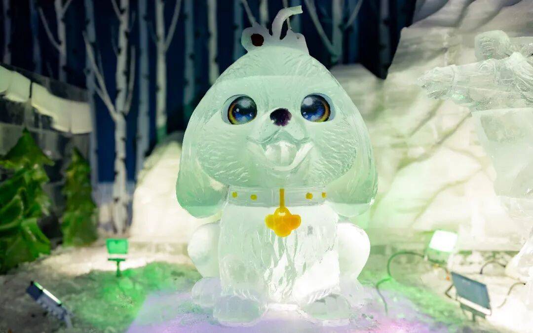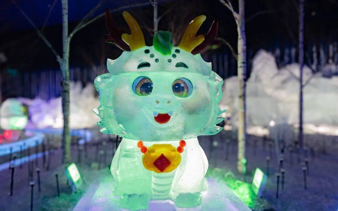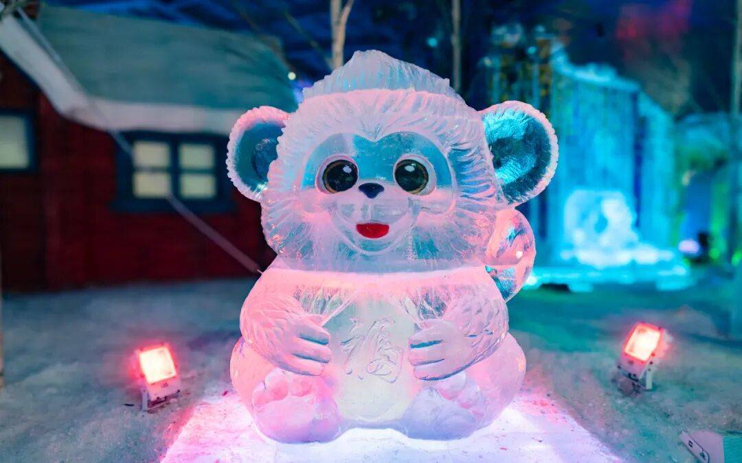 할빈 빙설대세계 몽환 빙설관에서 관광객들을 위해 특별히 제작한 ‘행운의 띠’ 얼음 조각 경관인 12지신 얼음 조각상들이 귀여움과 생동감 넘치는 모습으로 관광객들의 동심을 자극하며 방문을 기다리고 있다.
