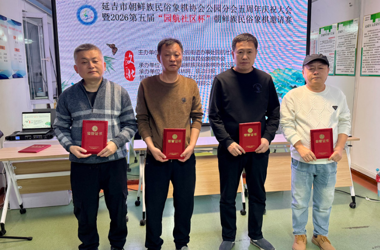 2월 27일 오전, 연길시조선족민속장기협회 공원분회 창립 5주년 경축대회 및 2026 제5회'원항사회구역컵' 조선족민속장기대회가 연길시 공원가두 원항사화구역에서 있었다.