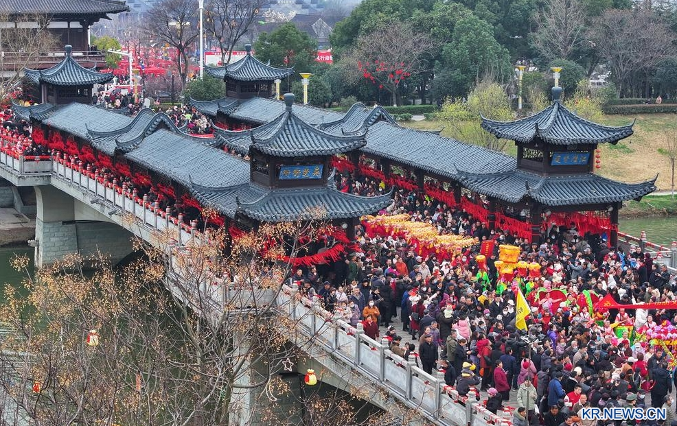 안휘성 저주(滁州)시 전초(全椒)현의 전통 민속 행사인 '태평 걷기' 행사가 4일 막을 올렸다. 매년 정월 16일이 되면 현지인들은 태평교를 걸으며 한 해의 평안과 순조로움을 기원한다.