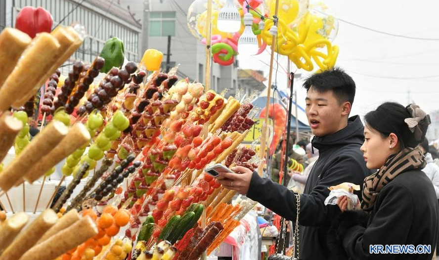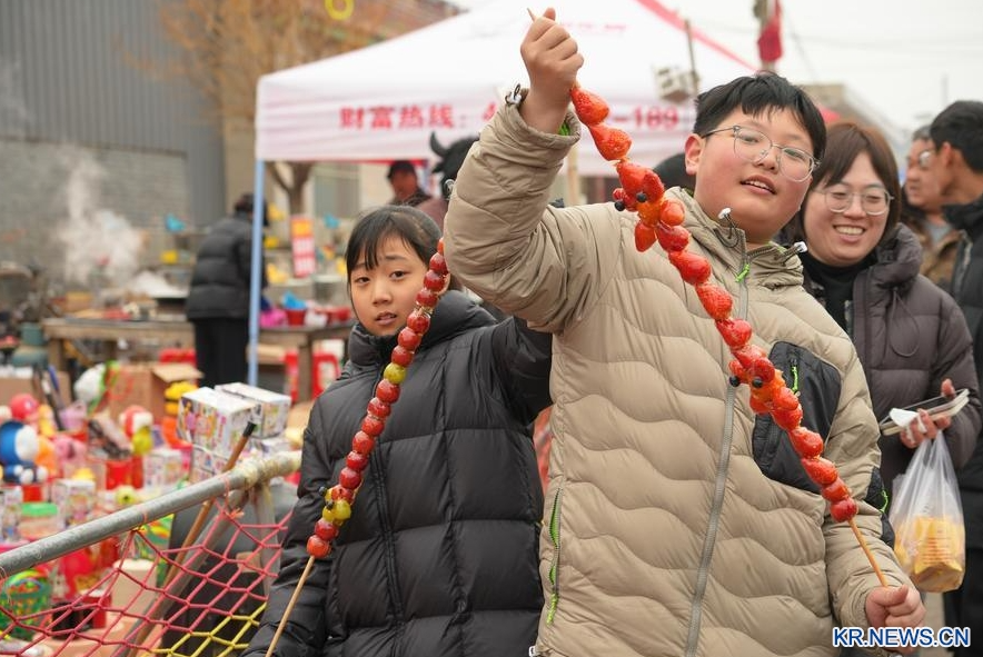 3일 아침 9시, 호북성 임구(任丘)시 후리화(後李花)촌이 활기를 내뿜었다. 관광객 수만 명이 탕후루 축제인 '당돈회(糖墩會)'에 모여 새콤달콤한 탕후루를 맛보고 민속 공연을 감상했다.