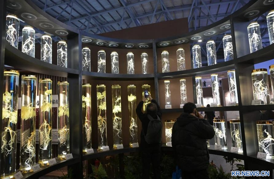 지난해 12월 7일 장백산(長白山) 인삼 산업 고품질 발전 대회 전시장을 둘러보는 관람객들.